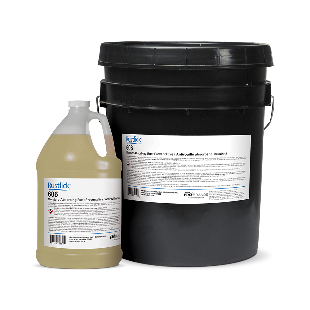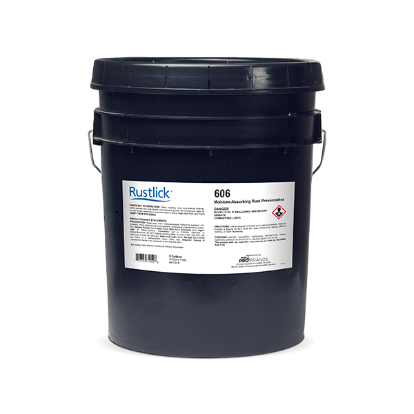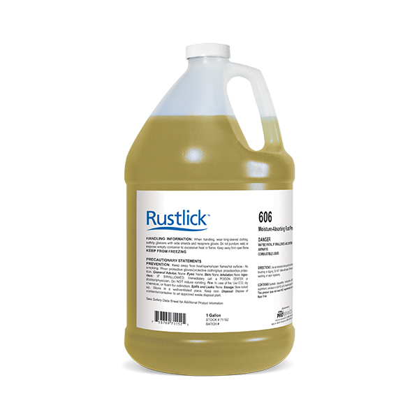 Rustlick™ 606 is a moisture-absorbing rust preventative and corrosion inhibitor designed for long-term in-door use which can be applied to porous, wet surfaces and reduces surface preparation time. It leaves an oily thin-film that is easily removed by wiping, alkaline washing, or vapor degreasing. Rustlick™ 606 is recommended for porous or configured metals.