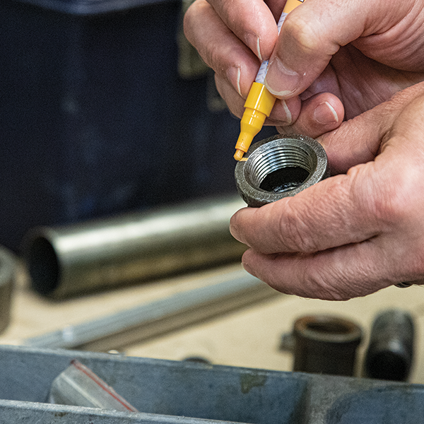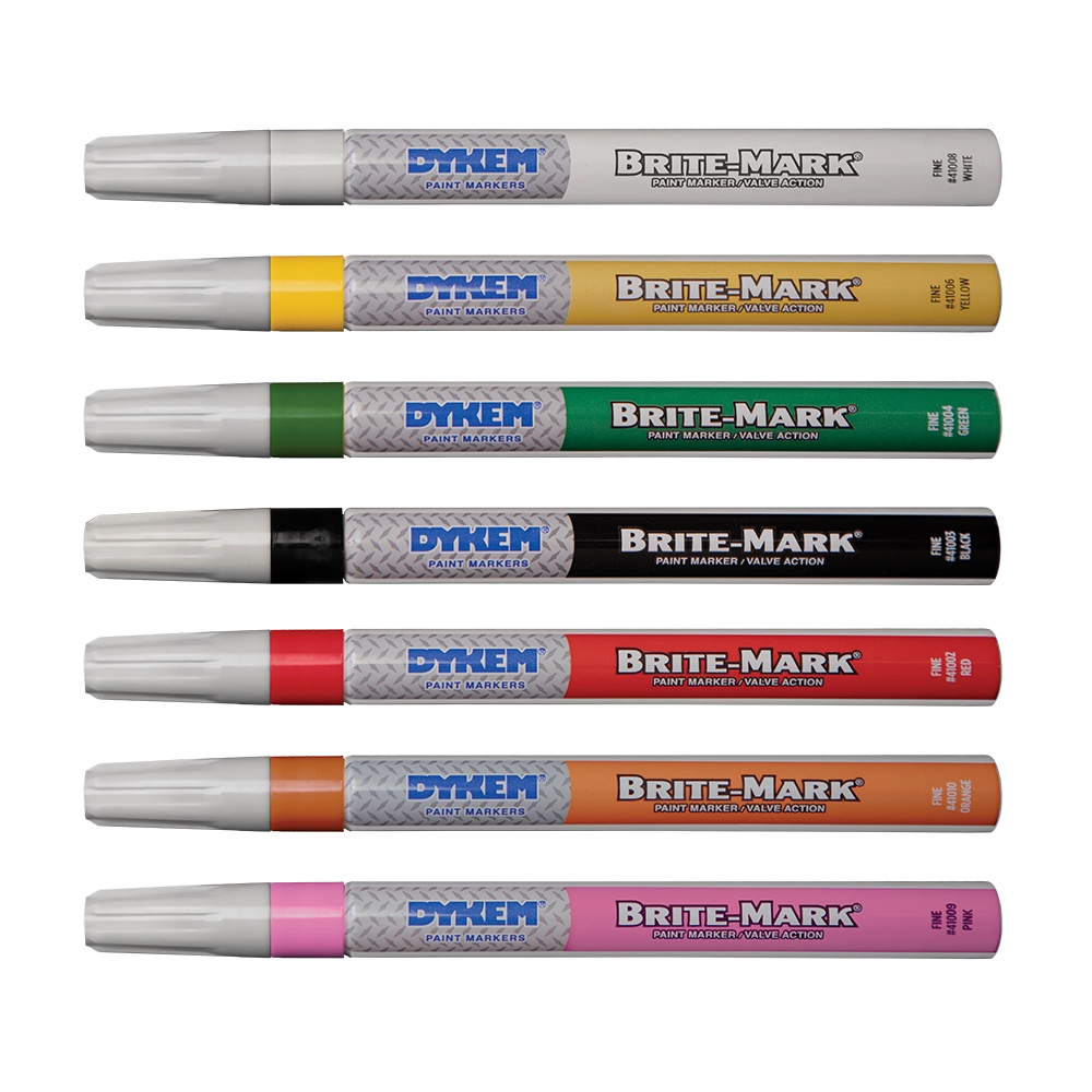 DYKEM® BRITE-MARK® Fine Permanent Paint Markers scribe bright, permanent marks on all types of surfaces. Their fine marks are ideal for permanently identifying small inventory, assemblies, tools, finished products, or work-in-progress. Filled with up to 67% more paint than competitors’ markers, BRITE-MARK Fine Permanent Paint Markers are equipped with valve action mechanisms to prevent paint in the barrel from drying out, even when the cap is off. Additionally, reversible and replaceable bullet nibs keep your marks sharp through the full life of the marker. This all adds up to 40% less waste.