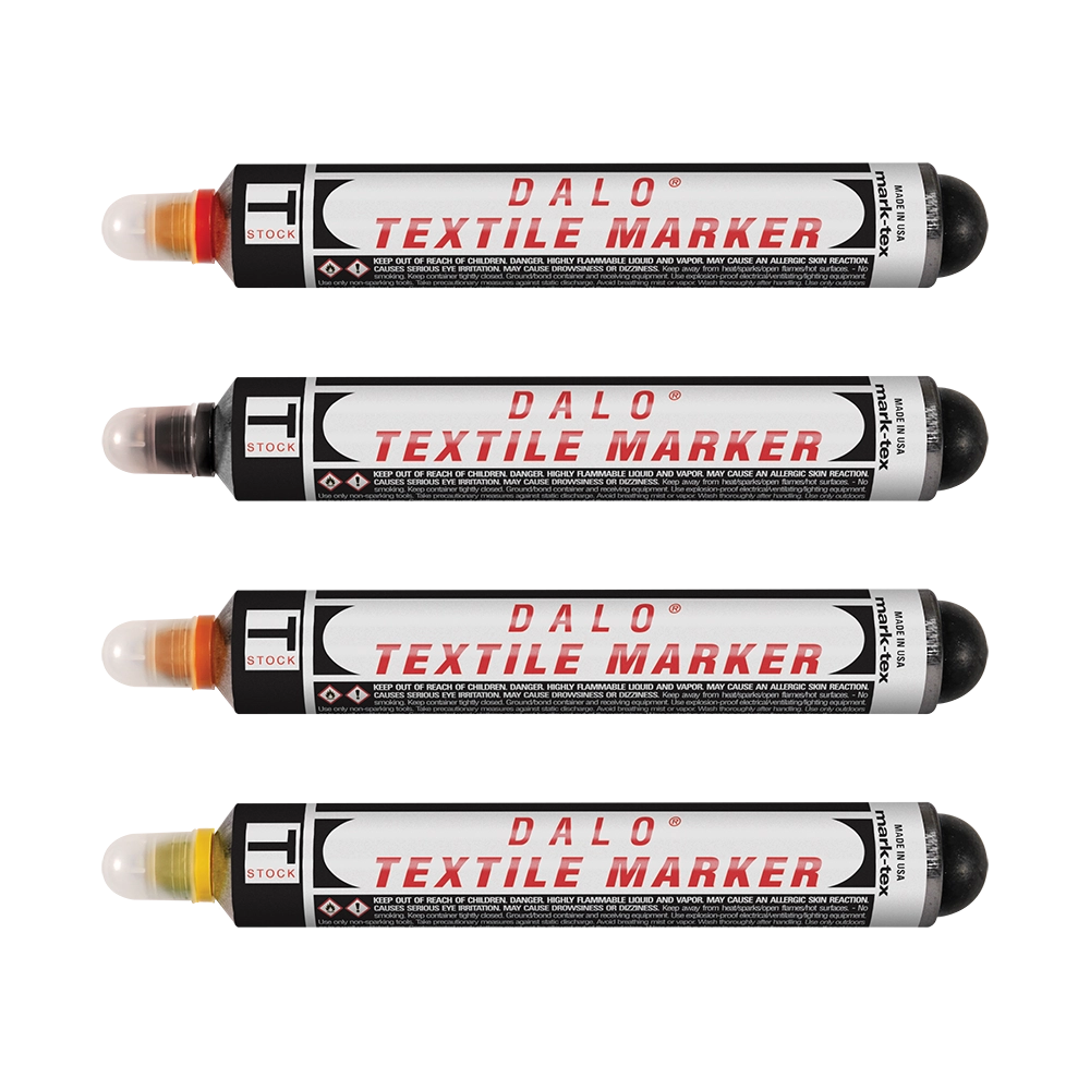 Advantageous for its ultra-high capacity, the Dalo® Textile Marker provides a bright, sharp, rapid-drying permanent mark on synthetic and synthetic/cotton blended fabrics.