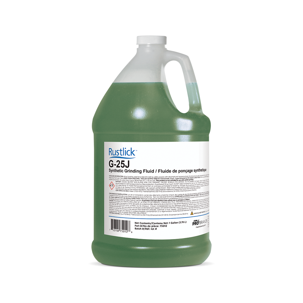 G-25J Synthetic Grinding Fluid is a superior general-purpose synthetic metalworking fluid formulated specifically for surface grinding, especially Blanchard grinding. Transparent solution provides rapid fines settling and good visibility while keeping wheels clean and offering dry-film corrosion protection for work pieces and machines.