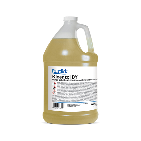 Rustlick™ Kleenzol DY is a water-soluble alkaline cleaner used for cleaning and degreasing sumps between coolant changes. It quickly penetrates and removes built-up chips and residue and it contains rust preventatives to protect machines during cleaning. This versatile cleaner can be used as a general industrial cleaner throughout the shop and is an excellent cleaner for parts washers.