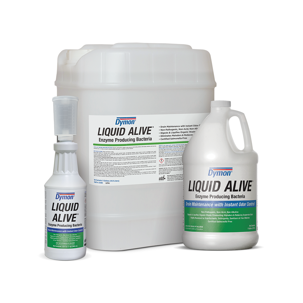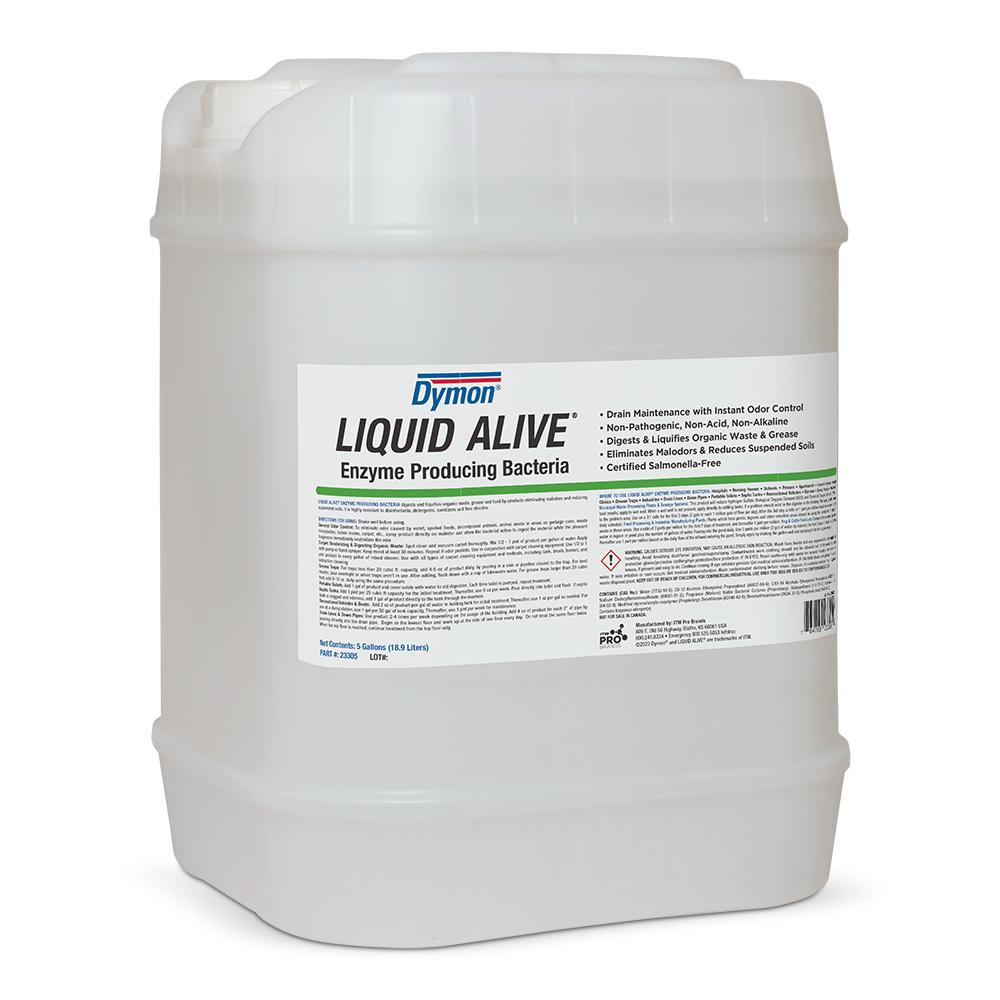 LIQUID ALIVE® Enzyme Producing Bacteria digests and liquifies organic waste, grease and food by-products eliminating malodors and reducing suspended soils. It is highly resistant to disinfectants, detergents, sanitizers and free chlorine.