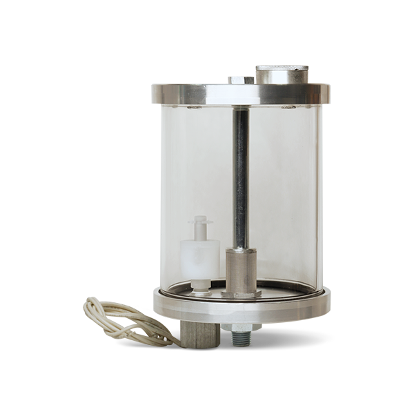 Replacement MQL fluid reservoirs allow for more customization of your machining application. Sizes from 10oz up to 1 gallon to match your fluid consumption patterns. Low-level switch feature is available on 1qt and 1gal size reserviors to interface with machinery controls, allowing for an additional level of safety and convenience when running parts