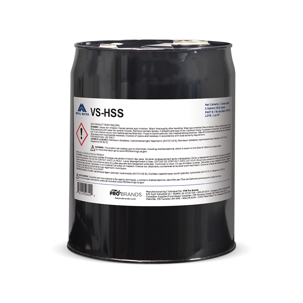 Metal Mates VS-HSS is a unique semi-synthetic micro-emulsion stamping and drawing lubricant designed for progressive dies and multi-forming operations with high strength steels. The VS technology prevents oily build-up on parts and dies while providing maximum die life. This product contains extreme pressure additives with barrier lubrication to prevent scoring, cracking, and rebounding (springback) in high strength steel. VS-HSS shows excellent performance on 300-500 mPa range high strength steel in light to moderate-duty stamping applications.